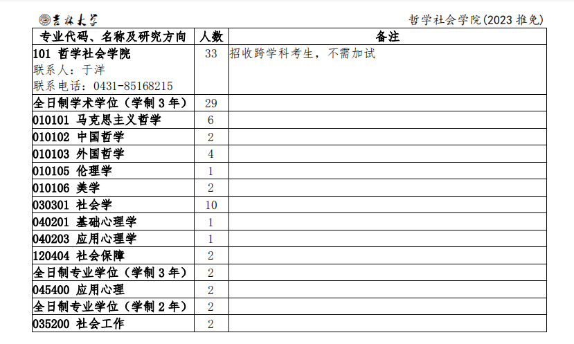 (参见吉林大学2023年接收优秀应届本科毕业生免试攻读研究生招生简章及专业目录//zsb.cqsscweb.com/info/2812.html)